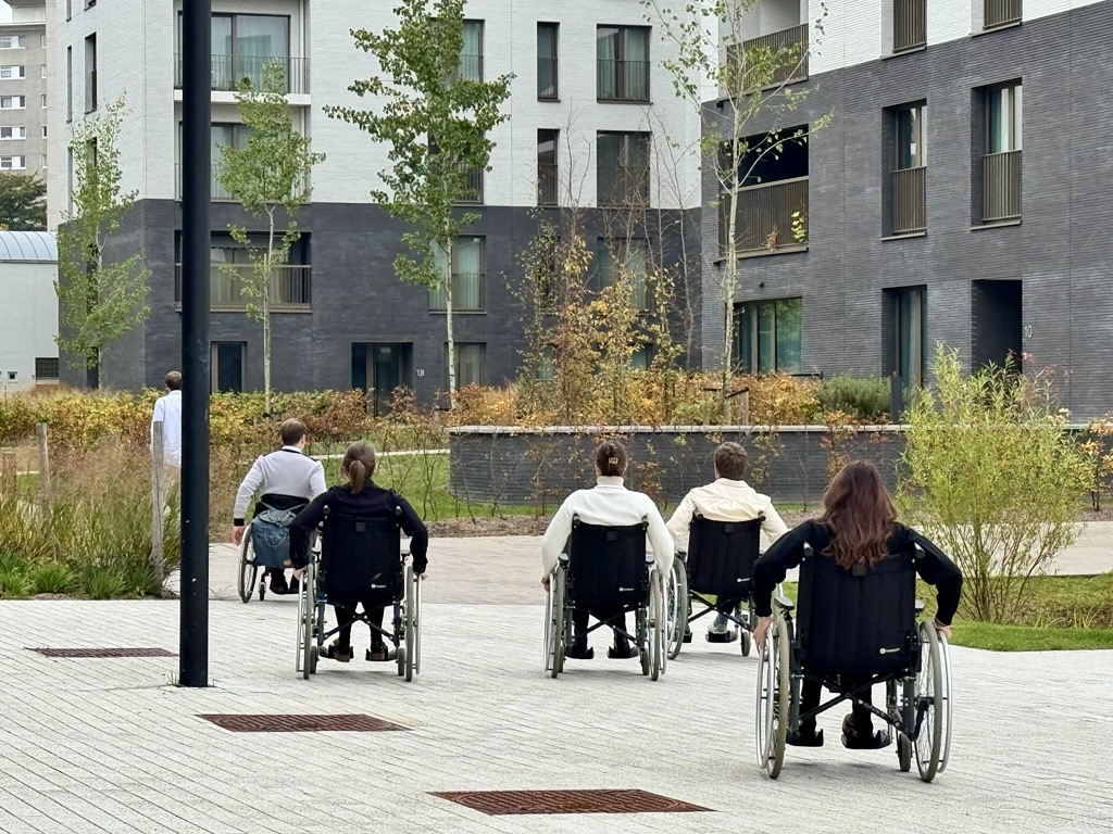 L’objectif n’était pas simplement de rappeler les normes existantes, mais bien d’en comprendre le sens et l’impact dans la réalité du terrain. Dans ce cadre, plusieurs mises en situation ont été organisées : se mettre 2 heures durant dans la peau d’une personne à mobilité réduite et vivre ses difficultés dans ses mouvements ; comprendre qu’une norme ne répond pas à toutes les difficultés.