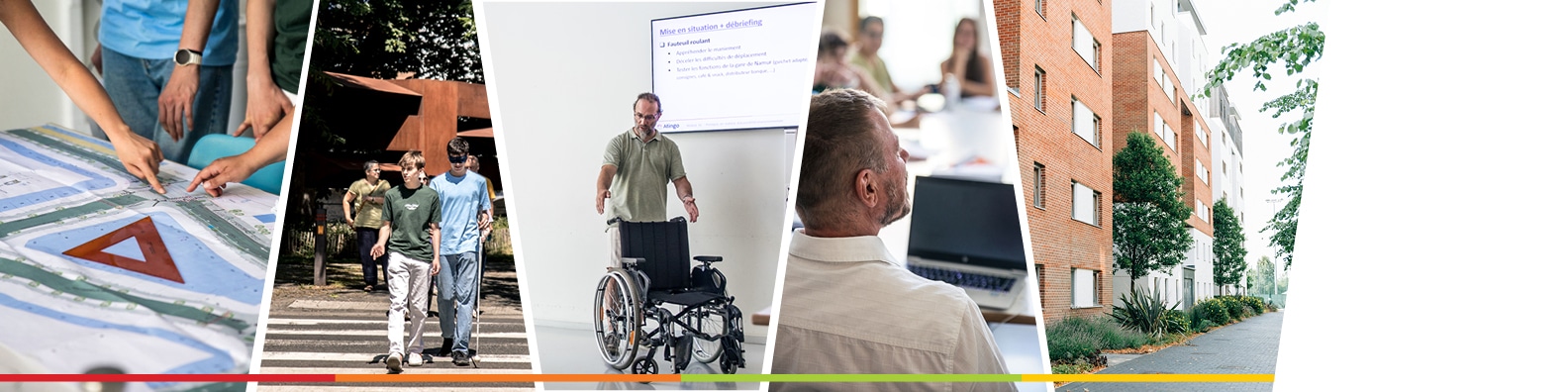 L’objectif n’était pas simplement de rappeler les normes existantes, mais bien d’en comprendre le sens et l’impact dans la réalité du terrain. Dans ce cadre, plusieurs mises en situation ont été organisées : se mettre 2 heures durant dans la peau d’une personne à mobilité réduite et vivre ses difficultés dans ses mouvements ; comprendre qu’une norme ne répond pas à toutes les difficultés.